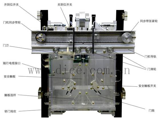 本电梯是根据常见的升降式电梯结构,采用钢管焊接一体而成,表面经过磷化喷塑处理、具有良好的结构刚性。为了便于教学,电梯主要机构部件均采用透明有机材料制成 (包括:限速器、轿厢、层门及门厅立面、轿门、轿厢、机房底板、导轨支架……)为了使电梯运行控制更加可靠逼真,设计了与实际电梯比例缩小的铝合金轿厢对重导轨、及轿门门机导轨、层门导轨。 本公司设计的透明限速器,能调整到电梯模型实现限速器触发安全钳制动所需要的速度,真实演示电梯安全运行保护功能(电梯模型轿厢运行速度低于实际电梯的速度20-30倍)。由于实际电梯无法实现在故障状态下的超速运行,因此永远无法真实演示限速器触发安全钳制动的安全运行保护功能,让学生观察了解安全运行保护机电联合控制的过程。 教学电梯的电气控制系统是采用PLC和交流变频调速控制,其硬件结构的组成及功能与实际电梯完全一样,具有自动平层、自动开关门、顺向响应轿内外呼梯信号、直驶、电梯安全运行保护等功能,以及电梯停用、急停、检修、慢上、慢下、照明和风扇等特殊功能。 通过直观的机械结构、精心的电气线路设计、完善的控制程序、展示了电梯的可靠的控制过程。使学生能够直观、透彻地了解、掌握电梯的结构及动作原理,达到事半功倍的效果。解决了以往电梯教学中单纯的理论教学方式或是参观实际电梯时所带来的不安全,无法了解其内部结构及运行控制过程。 透明仿真教学电梯的软硬件均采用开放式结构。因此,院校也可以利用此套装置进行二次开发研究。如:1. 群控电梯(统一调度多台集中并列的电梯)2 . 并联控制电梯:(2-3台电梯的控制线路并联,进行逻辑控制,共用层站外召唤按钮)3 . 集选控制电梯 4. 信号控制电梯。